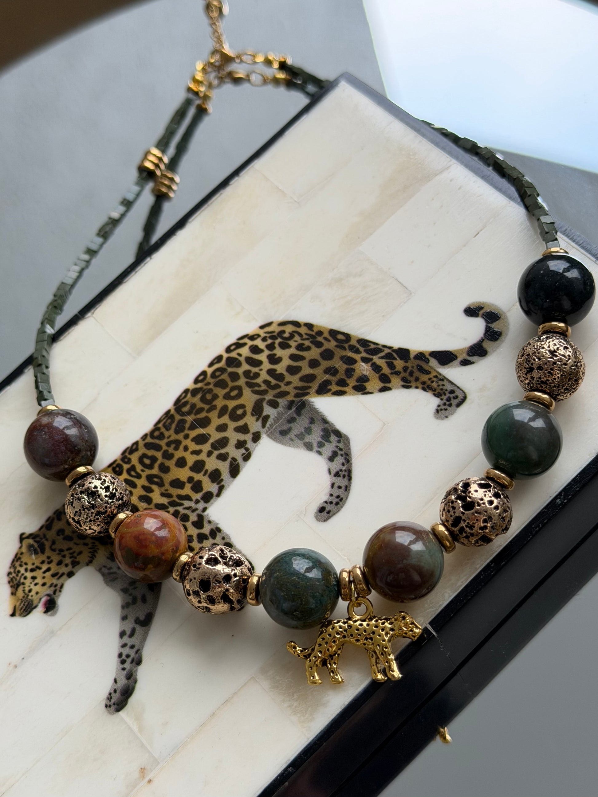 • Materials: moss agate, lava