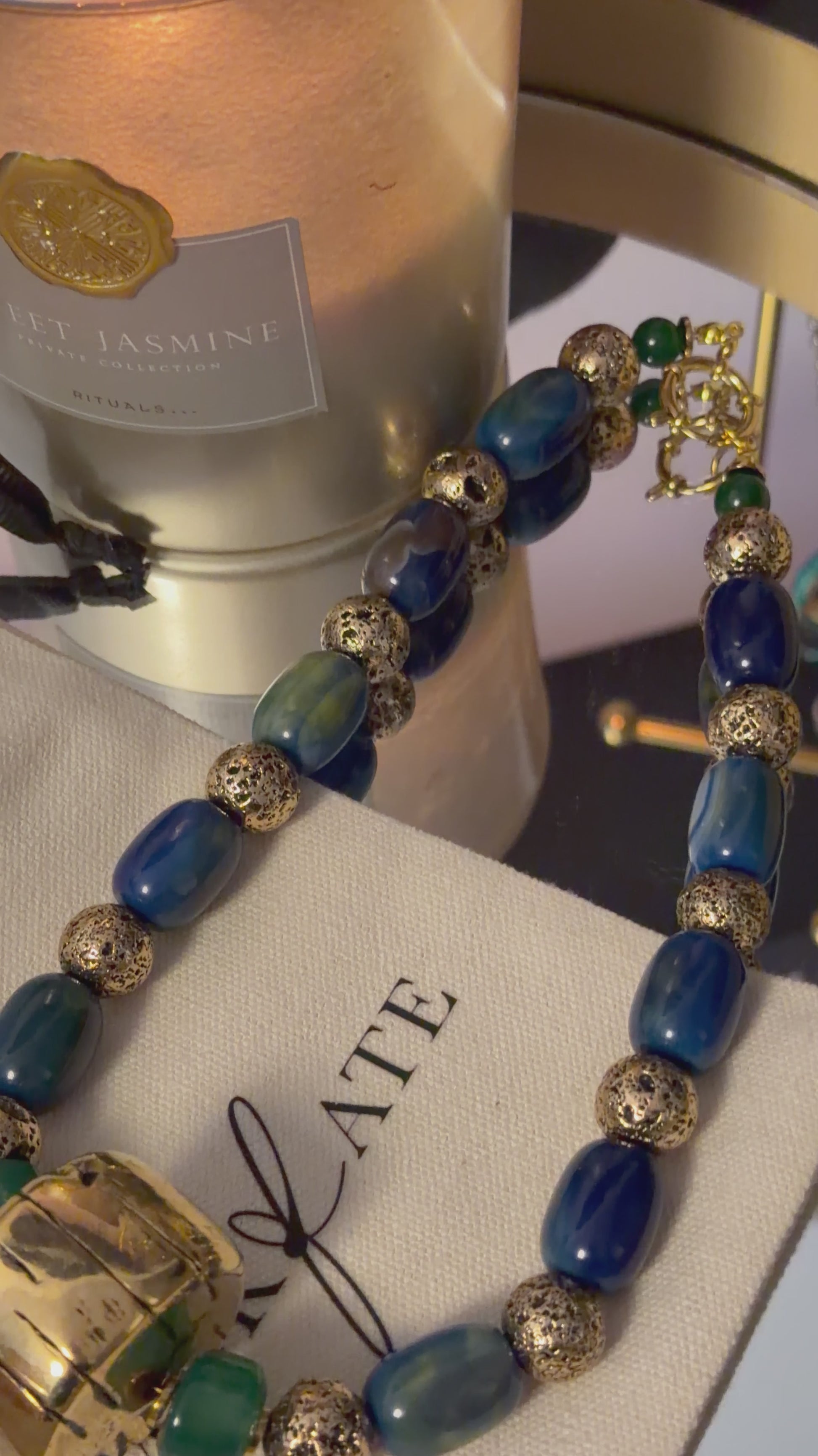 - Clasp: Adjustable lobster clasp in gold finish