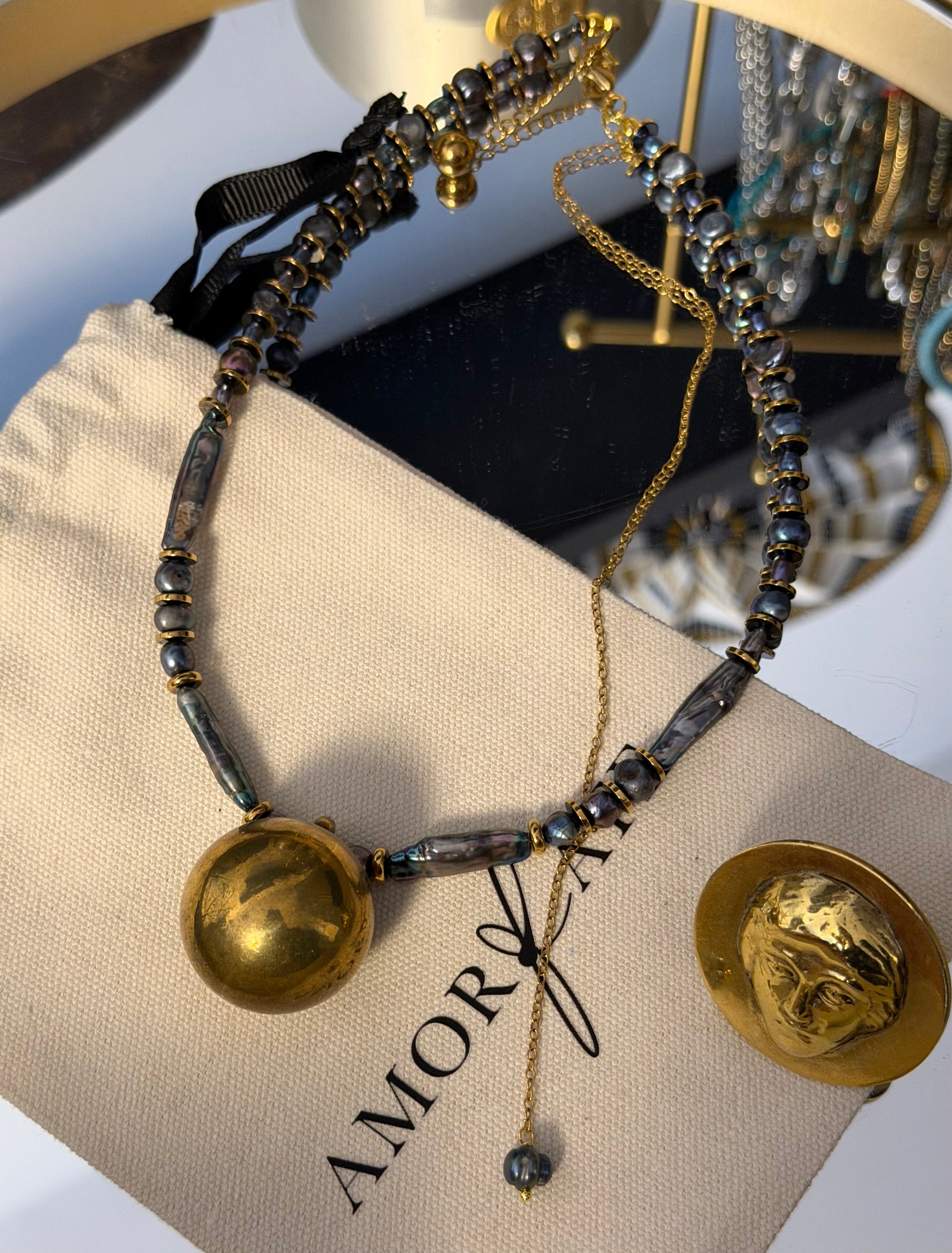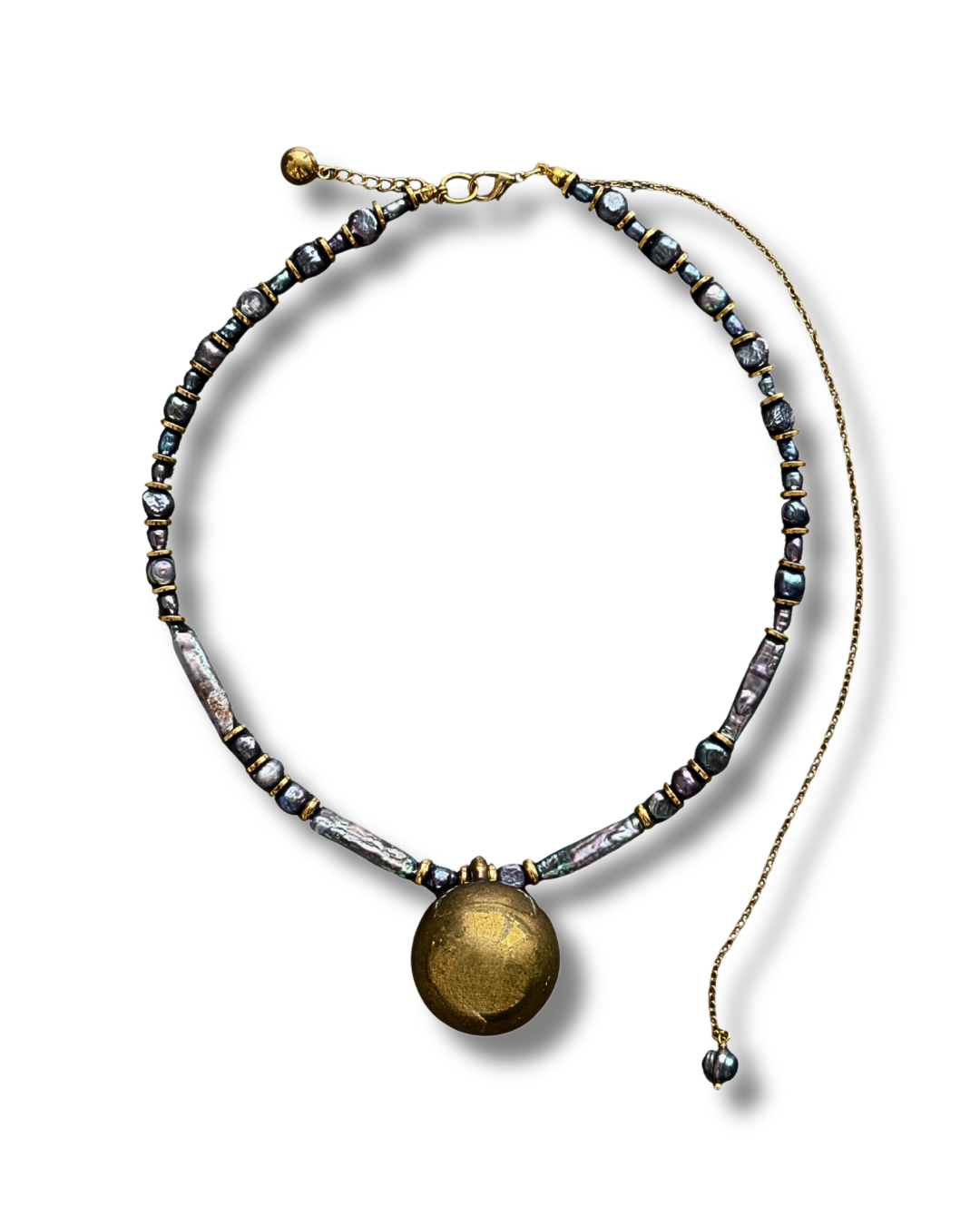 - Materials: lightly gold-plated metal charm, natural freshwater baroque pearl