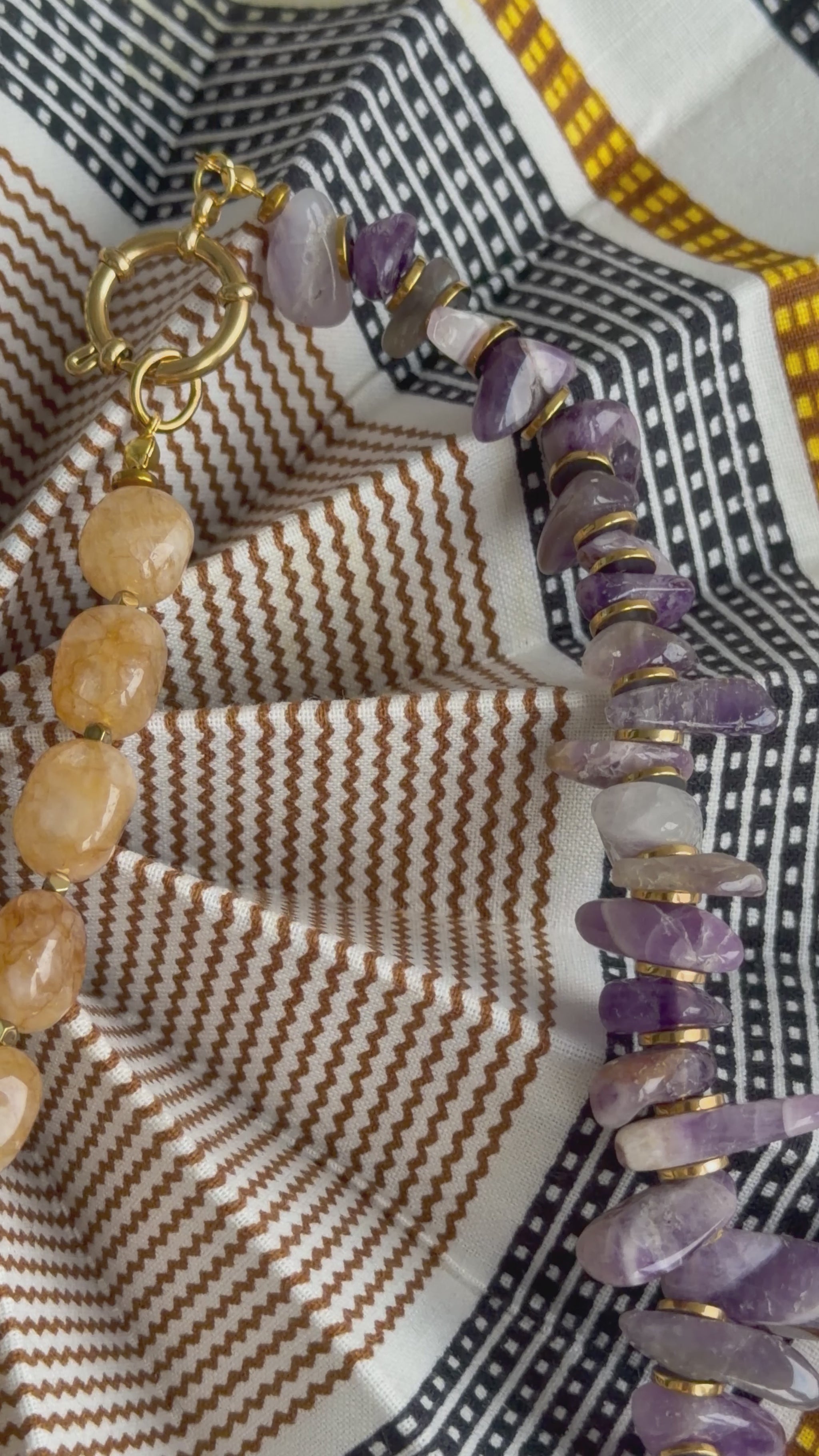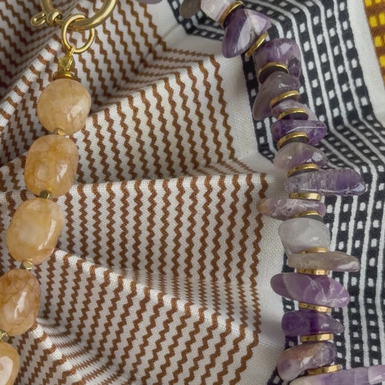 - Materials: Citrine, amethyst